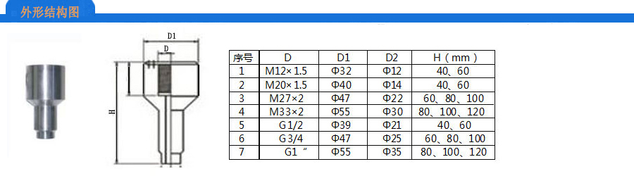 螺紋規格:M27×2、M20×1.5、M33×2、G1/2、G3/4、G1“(其它要求可定制)