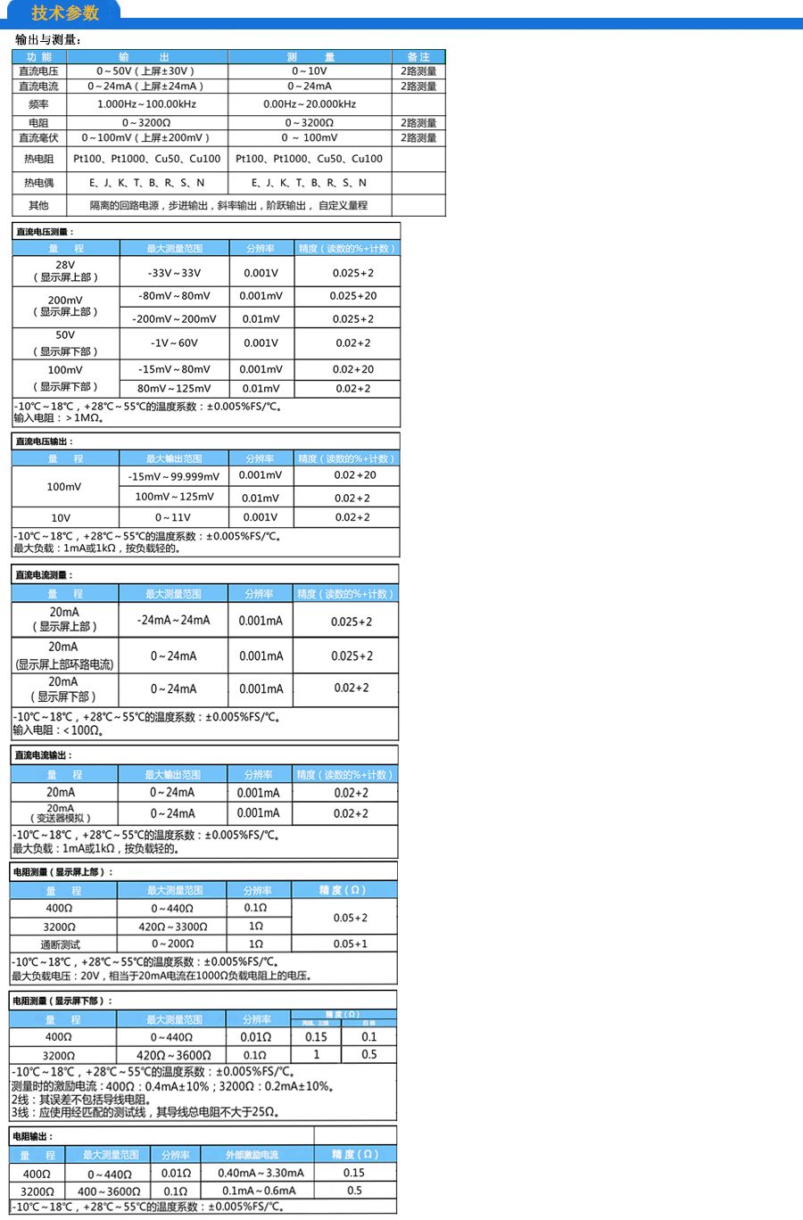 ● 測量/輸出:電壓、電流、頻率、電阻,其中電流輸出支持有源、無源;
