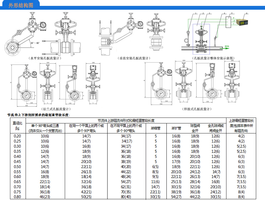 孔板流量計選型表: