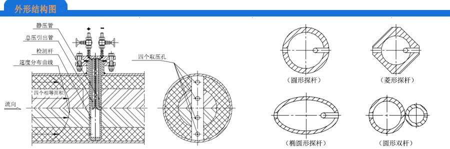 當流體流過探頭時,在其前部產生一個高壓分布區,高壓分布區的壓力略高于管道的靜壓。根據伯努利方程原理,流體流過探頭時速度加快,在探頭后部產生一個低壓分布區,低壓分布區的壓力略低于管道的靜壓。流體從探頭流過后在探頭后部產生部分真空,并在探頭的兩側出現旋渦。均速流量探頭的截面形狀、表面粗糙狀況和低壓取壓孔的位置是決定探頭性能的關鍵因素。低壓信號的穩定和準確對均速探頭的精度和性能起決定性作用。阿牛巴均速流量探頭能檢測到由流體的平均速度所產生的平均差壓。阿牛巴均速流量探頭在高、低壓區有按一定準則排布的多對取壓孔,使準確測平均流速成為可能.