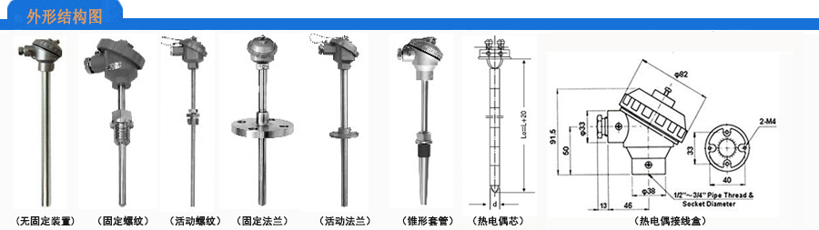 熱電偶是采用兩根不同材質的偶絲作為測量原件,根據溫度范圍不同兩根偶絲的材質不同,也就是對應不同的分度號。熱電偶根據應用場合的不同有不同外形的不同種類,但是大體都是由偶絲、保護套管、安裝固定裝置和接線盒組成。