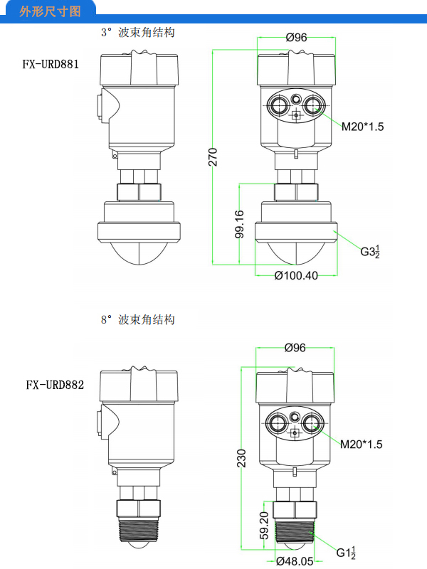 FX-URD880系列調頻連續波雷達物料計的通用原理為雷達在罐頂發射電磁波,電磁波碰到介質反射后被雷達接收,接收信號與發射信號之間的頻率差與介質表面的距離成一定比例關系。因為...