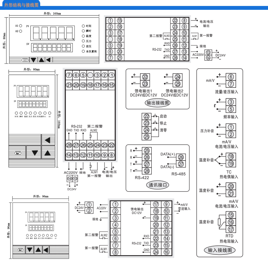 報警功能:上限、下限、上下限、下回差、雙回差、OK方式、正值方式等