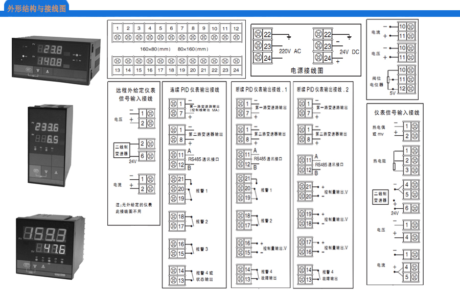 PID4~20mA輸出(反作用) PID0~ 10mA輸出(反作用) PID0~5V輸出(反作用) PID1~5V輸出(反作用) PID0~10V輸出(反作用) 正作用(1~5其中一種,訂貨注明) 1~6其中一種+繼電器(訂貨注明繼電器的種類和數量) |
