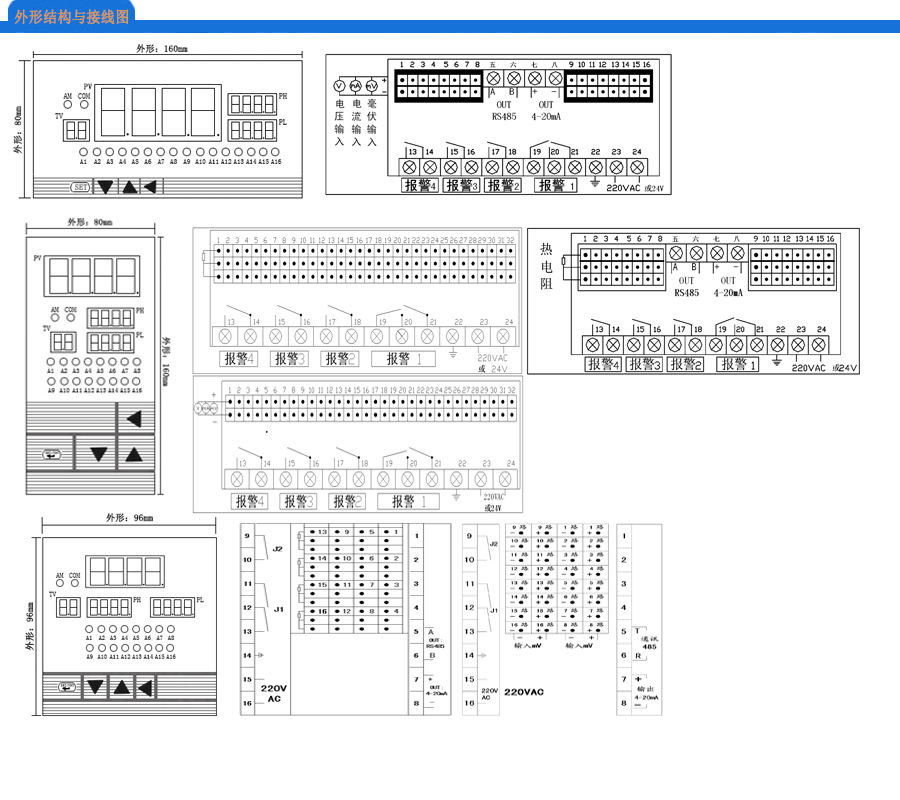 報警功能:上限、下限、上下限、上回差、下回差、雙回差、OK方式、正值方式等。