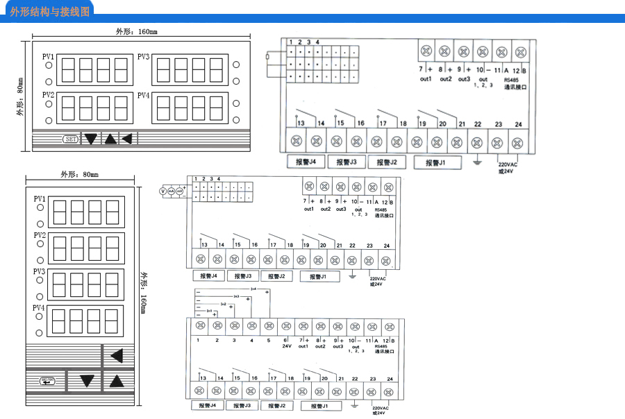 四路獨立設置上限或下限報警值(共用1只繼電器)
