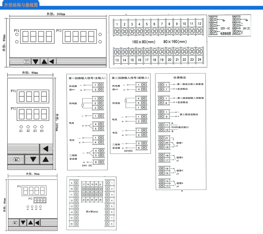 雙路數(shù)字顯示控制儀選型表: